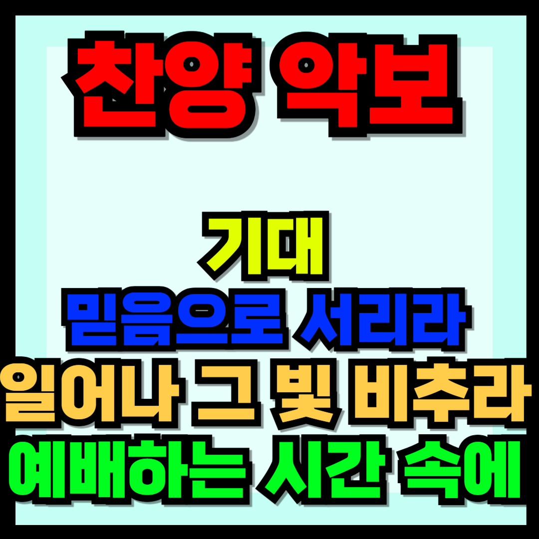 기대, 믿음으로 서리라, 일어나 그 빛 비추라, 예배하는 시간 속에 악보를 올려 드립니다. 악보통으로 가시면 최신 악보들을 구하실 수가 있겠습니다. 혹시나 급하신 분들을 위하여 구할 수 있는 곳들을 알려드립니다. 또한 각 찬양들의 PPT 파일을 올려드립니다. 급할 때 사용하실 수 있게 간단하게 만들어져 있으니 상황에 맞게 바꾸셔도 되겠습니다.