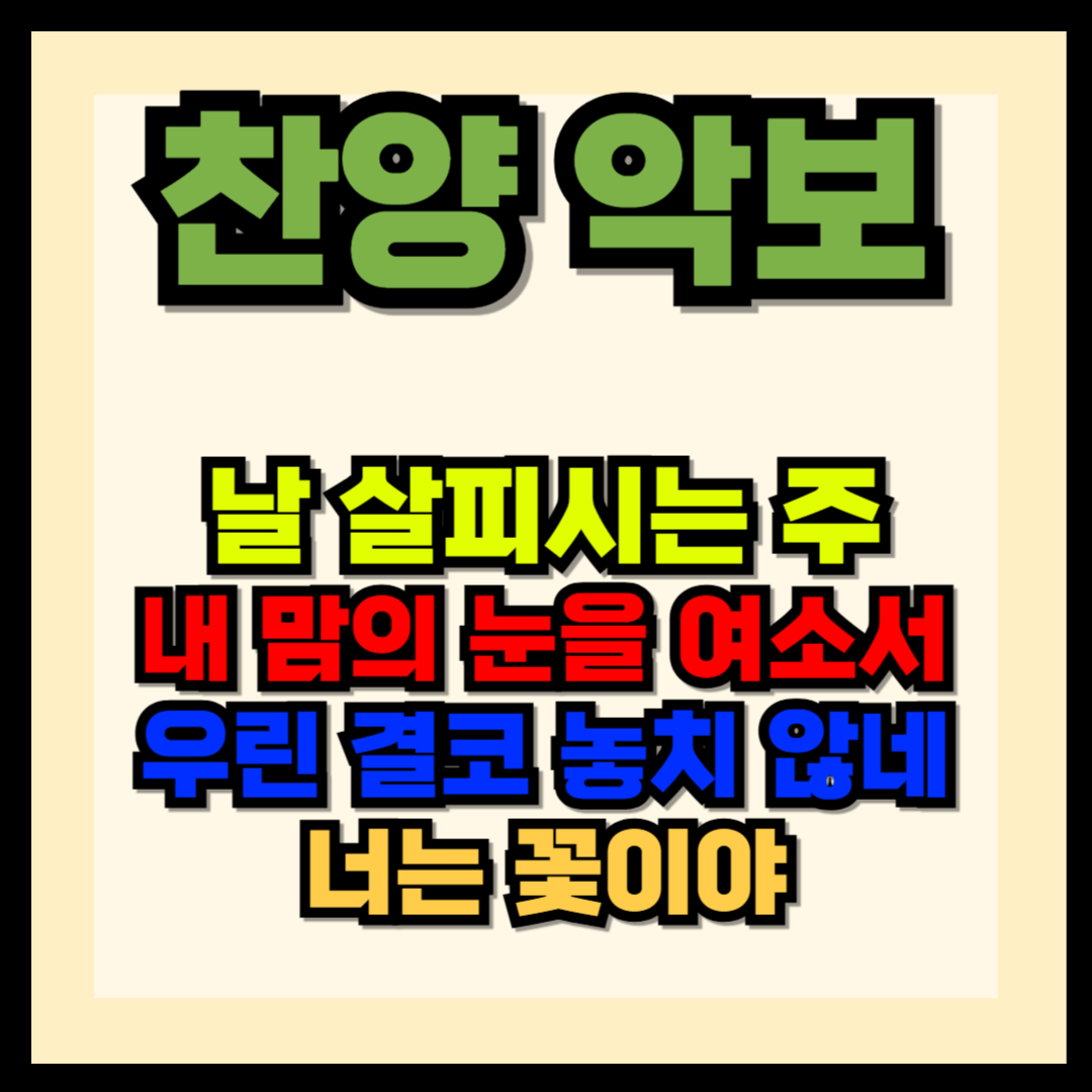 날 살피시는 주, 내 맘의 눈을 여소서, 우린 결코 놓지 않네, 너는 꽃이야 악보를 올려 드립니다. 악보통으로 가시면 최신 악보들을 구하실 수가 있겠습니다. 혹시나 급하신 분들을 위하여 구할 수 있는 곳들을 알려드립니다. 또한 각 찬양들의 PPT 파일을 올려드립니다. 급할 때 사용하실 수 있게 간단하게 만들어져 있으니 상황에 맞게 바꾸셔도 되겠습니다.