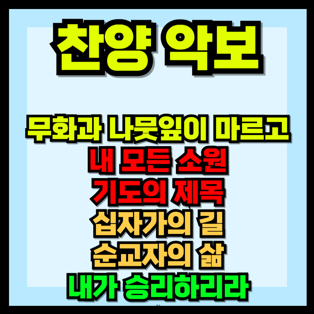 무화과 나뭇잎이 마르고 악보, 내 모든 소원 기도의 제목 악보, 십자가의 길 순교자의 삶 악보, 내가 승리하리라 악보를 올려드립니다. 악보통으로 가시면 최신 악보들을 구하실 수가 있겠습니다. 혹시나 급하신 분들을 위하여 구할 수 있는 곳들을 알려드립니다. 또한 각 찬양들의 PPT 파일을 올려드립니다. 급할 때 사용하실 수 있게 간단하게 만들어져 있으니 상황에 맞게 바꾸셔도 되겠습니다.