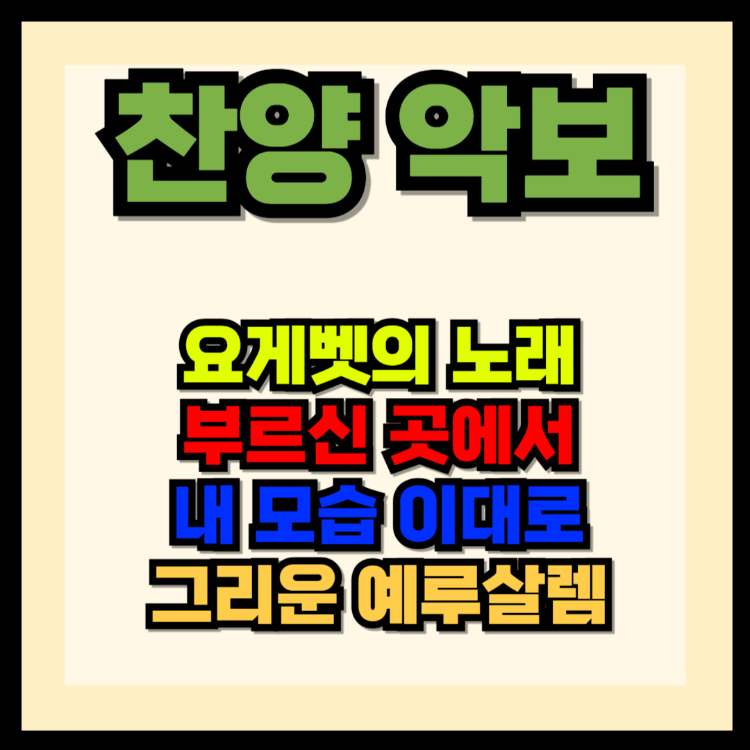 요게벳의 노래, 부르신 곳에서, 내 모습 이대로, 그리운 예루살렘 악보 등 수많은 찬양 악보들을 모두 악보통이라는 사이트에서 보실 수가 있습니다. 아래에 있는 곳으로 가셔서 필요한 악보들을 사용하시기 바랍니다.