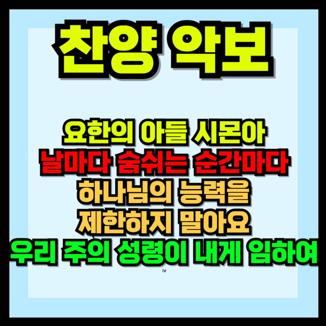 요한의 아들 시몬아 악보, 날마다 숨쉬는 순간마다 악보, 하나님의 능력을 제한하지 말아요 악보, 우리 주의 성령이 내게 임하여 악보