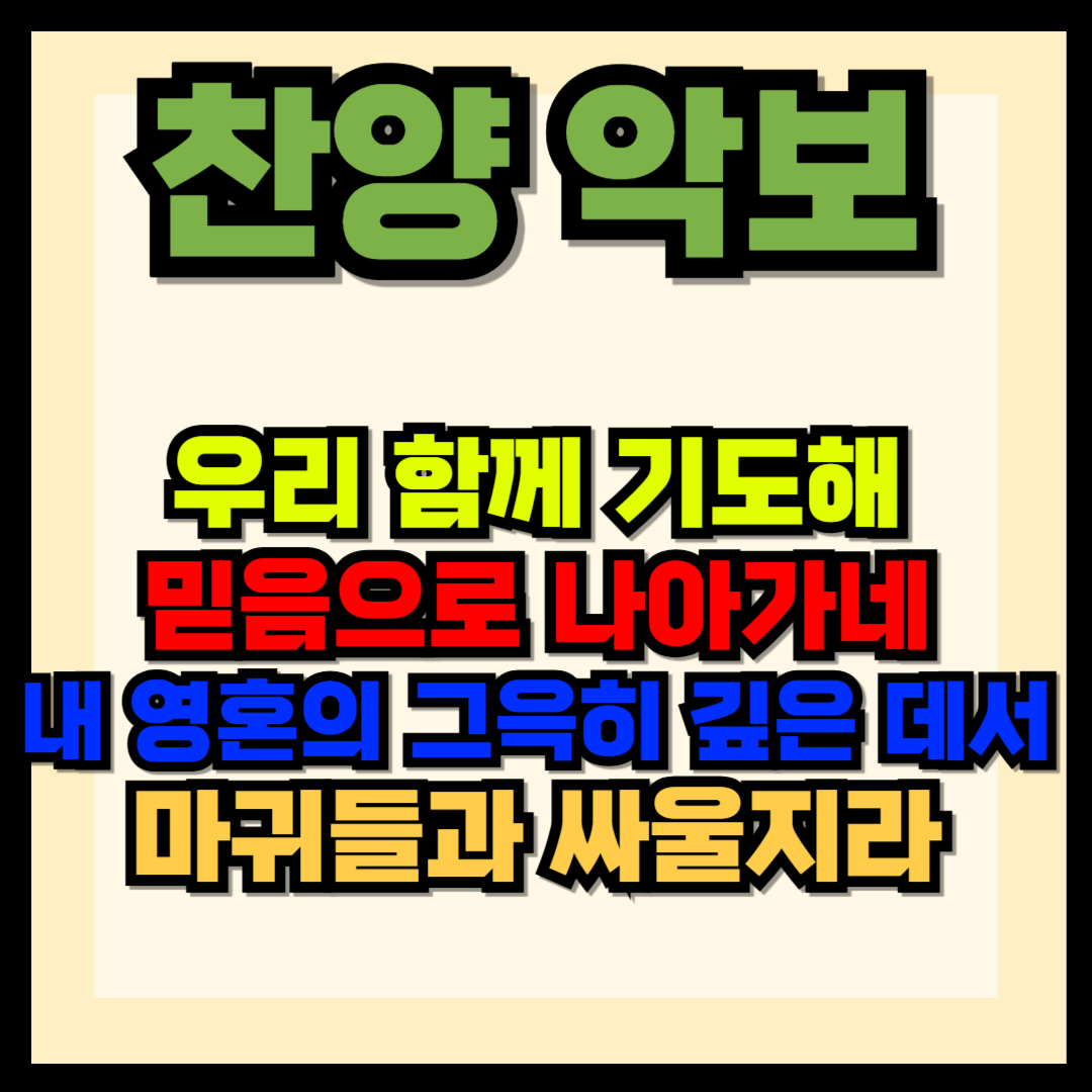 우리 함께 기도해, 믿음으로 나아가네, 내 영혼의 그윽히 깊은 데서, 마귀들과 싸울지라 악보를 올려 드립니다. 악보통으로 가시면 최신 악보들을 구하실 수가 있겠습니다. 혹시나 급하신 분들을 위하여 구할 수 있는 곳들을 알려드립니다. 또한 각 찬양들의 PPT 파일을 올려드립니다. 급할 때 사용하실 수 있게 간단하게 만들어져 있으니 상황에 맞게 바꾸셔도 되겠습니다.