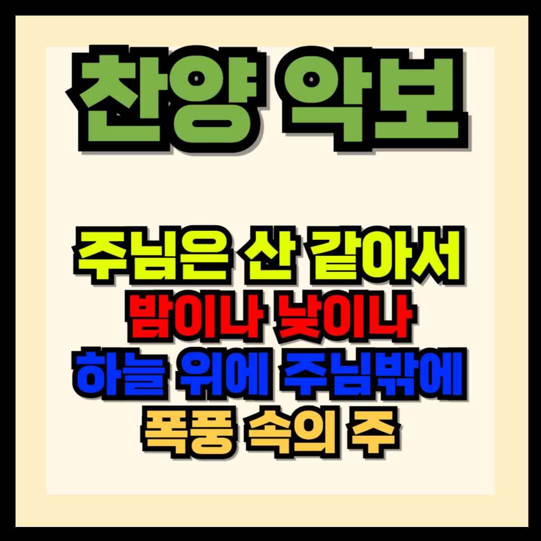 주님은 산 같아서, 밤이나 낮이나, 하늘 위에 주님밖에, 폭풍 속의 주 악보를 올려 드립니다. 악보통으로 가시면 최신 악보들을 구하실 수가 있겠습니다. 혹시나 급하신 분들을 위하여 구할 수 있는 곳들을 알려드립니다. 또한 각 찬양들의 PPT 파일을 올려드립니다. 급할 때 사용하실 수 있게 간단하게 만들어져 있으니 상황에 맞게 바꾸셔도 되겠습니다.