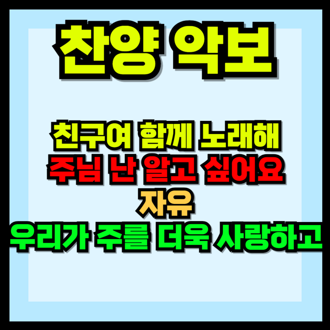친구여 함께 노래해 악보, 주님 난 알고 싶어요 악보, 자유 악보, 우리가 주를 더욱 사랑하고 악보를 올려드립니다. 악보통으로 가시면 최신 악보들을 구하실 수가 있겠습니다. 혹시나 급하신 분들을 위하여 구할 수 있는 곳들을 알려드립니다. 또한 각 찬양들의 PPT 파일을 올려드립니다. 급할 때 사용하실 수 있게 간단하게 만들어져 있으니 상황에 맞게 바꾸셔도 되겠습니다.